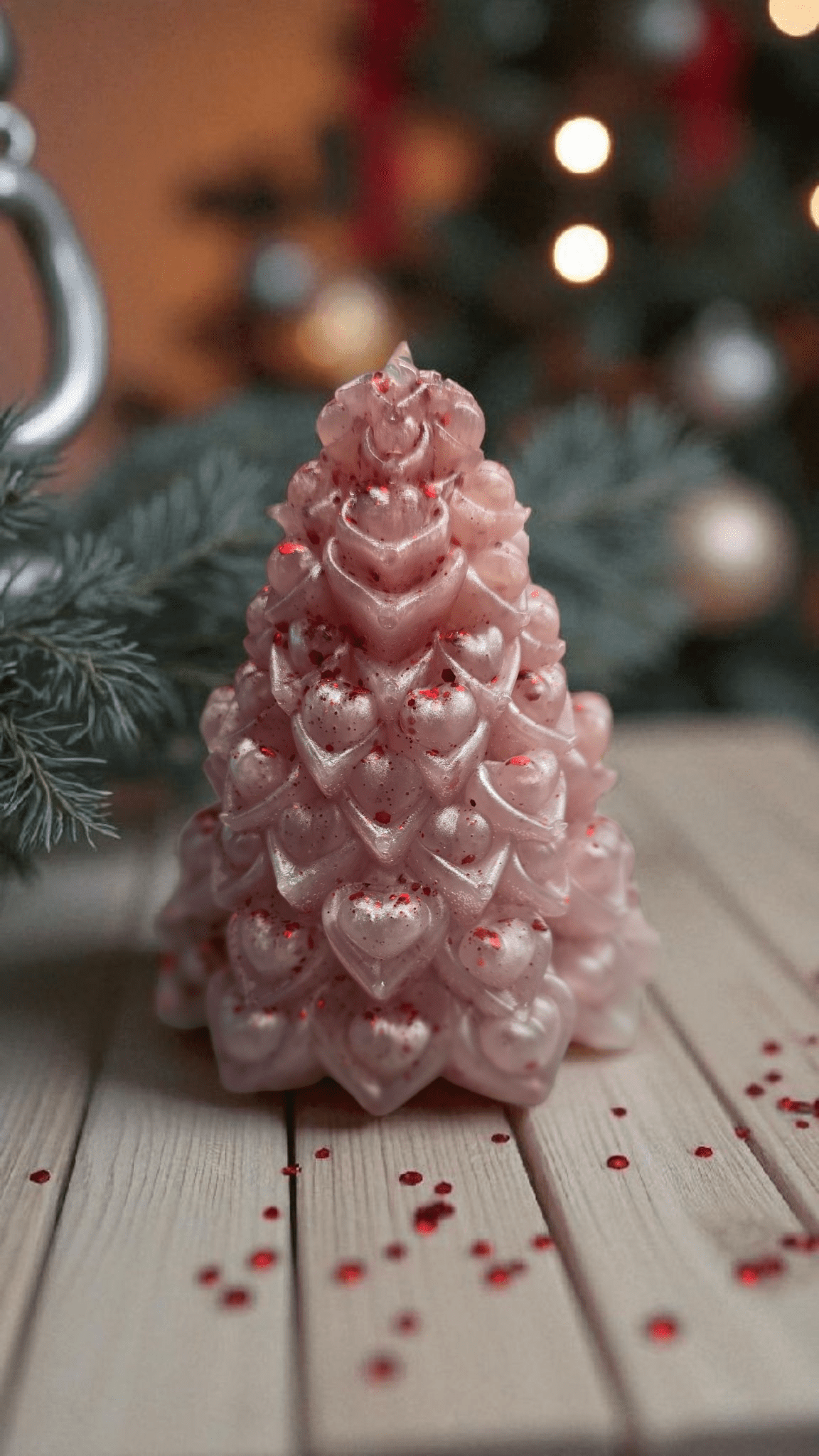 Level up your festive décor with this stunning, red & white Christmas tree! Intricately designed with hundreds of delicate shimmering hearts and dusted with sparkling red glitter, it’s the perfect blend of romance and holiday cheer. A truly unique piece for a cosy home or a beautiful gift
