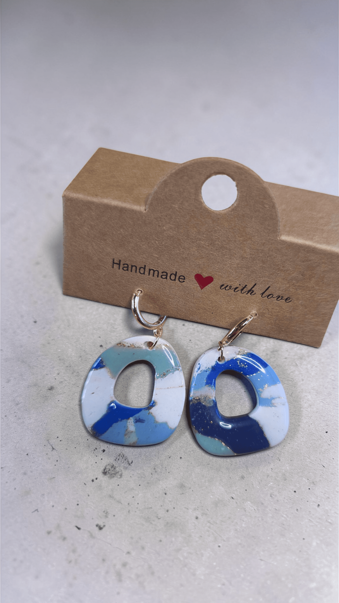 Because the clay is mixed and rolled by hand, no two earrings are ever identical—making your pair a true “one-of-one” original. Finished with a high-gloss UV resin for a glass-like shine and lasting durability, these lightweight hoops bring a splash of the ocean to any outfit.